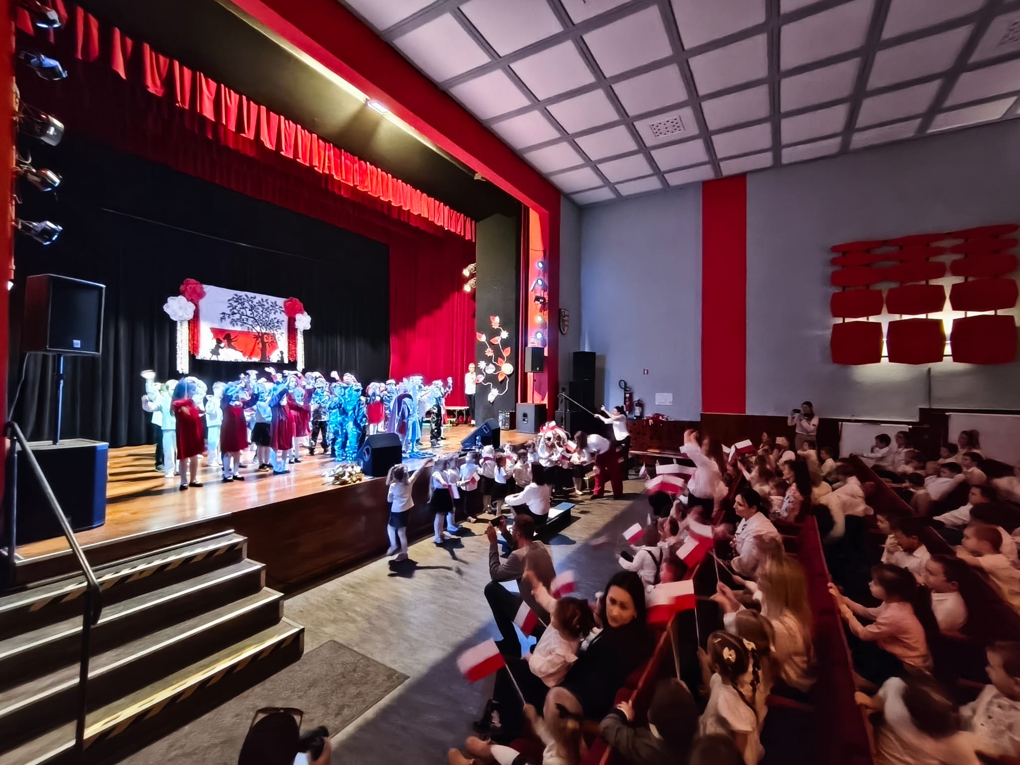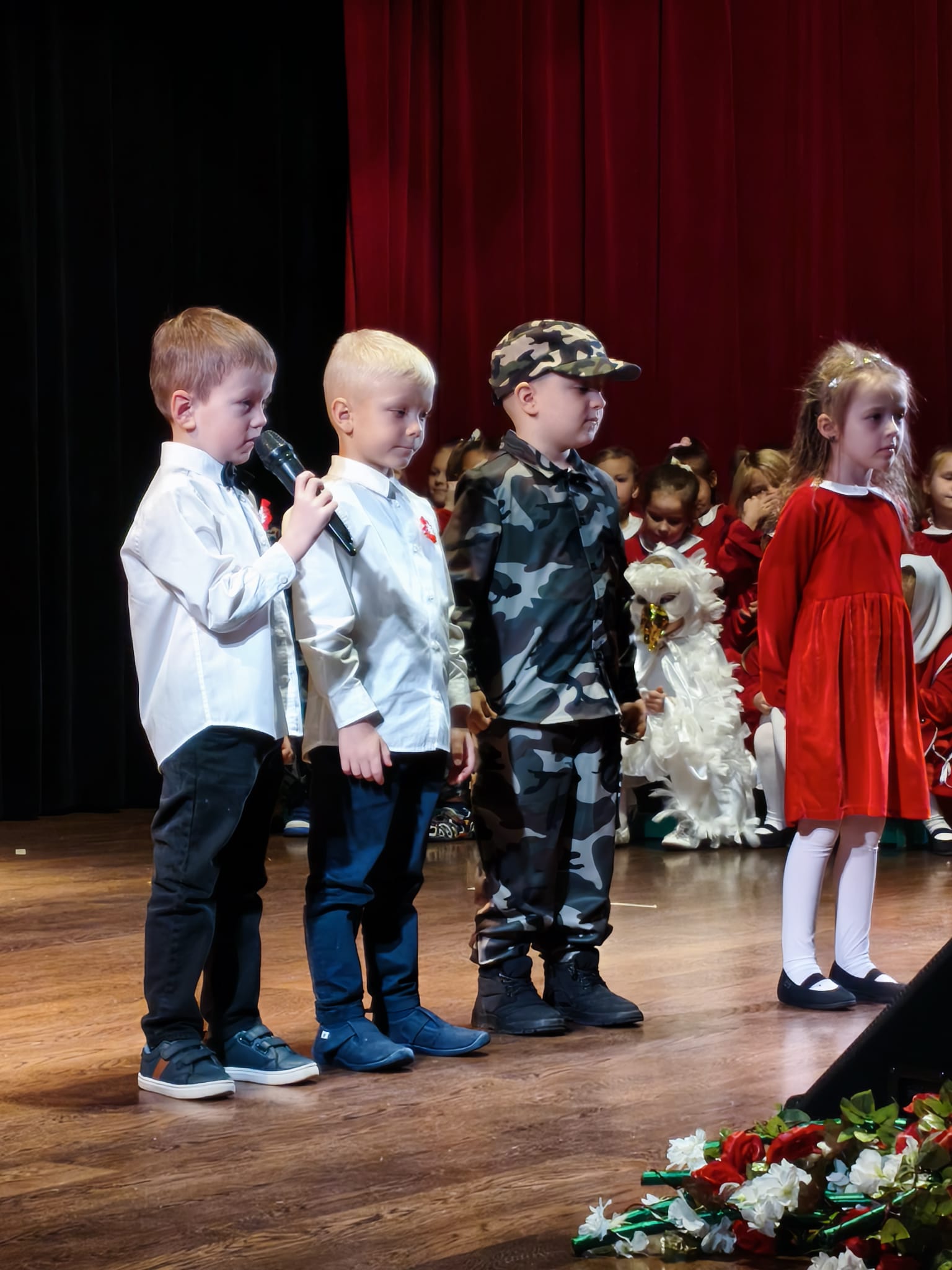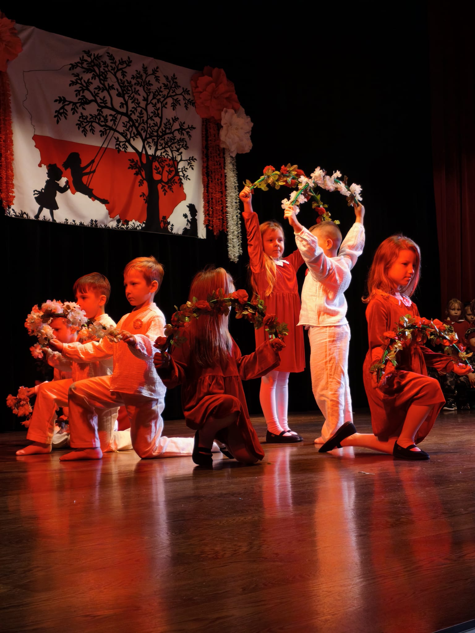 Dzieci z grup Żabki, Motylki,Biedronki i Pszczółki przygotowały wzruszający program artystyczny – z wielkim zaangażowaniem recytowały wiersze patriotyczne, śpiewały piosenki o Polsce oraz prezentowały układy taneczne w barwach biało-czerwonych.