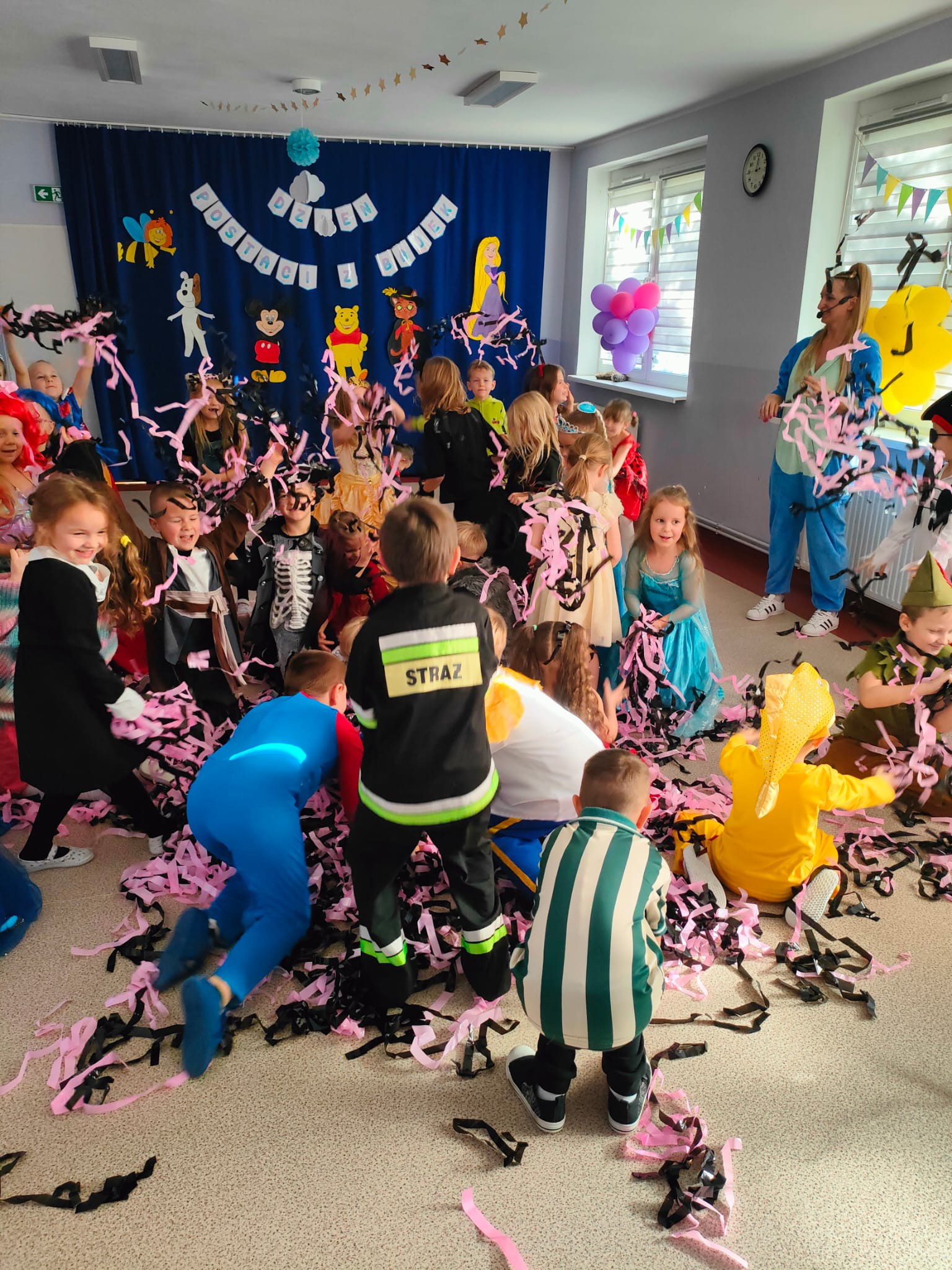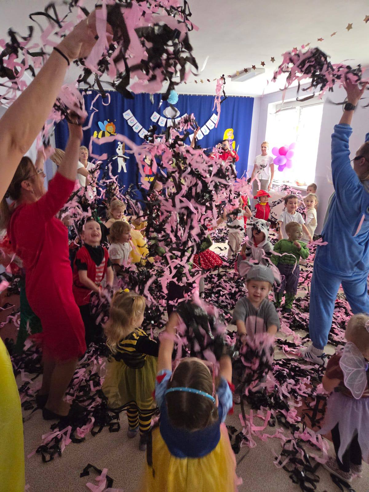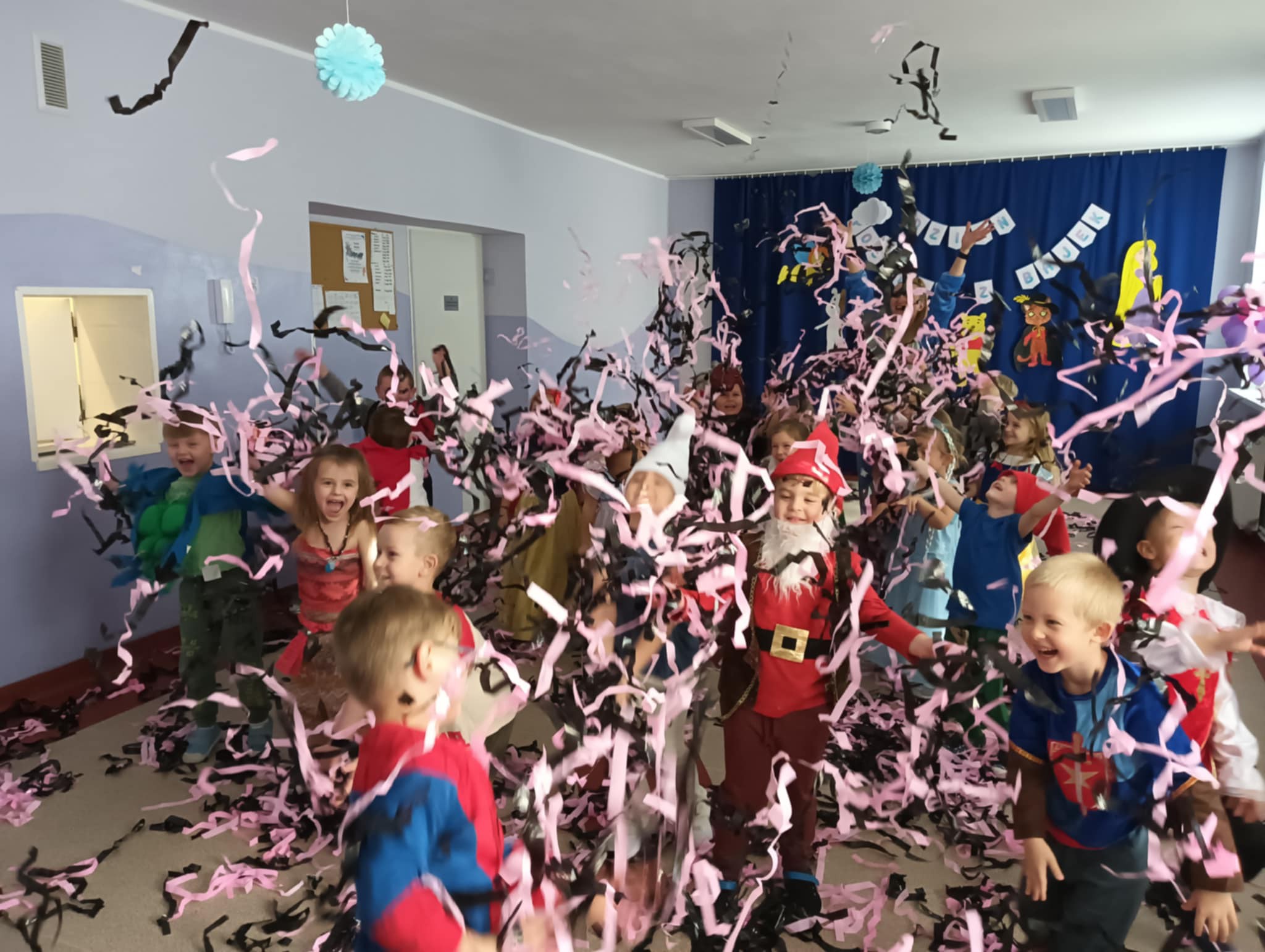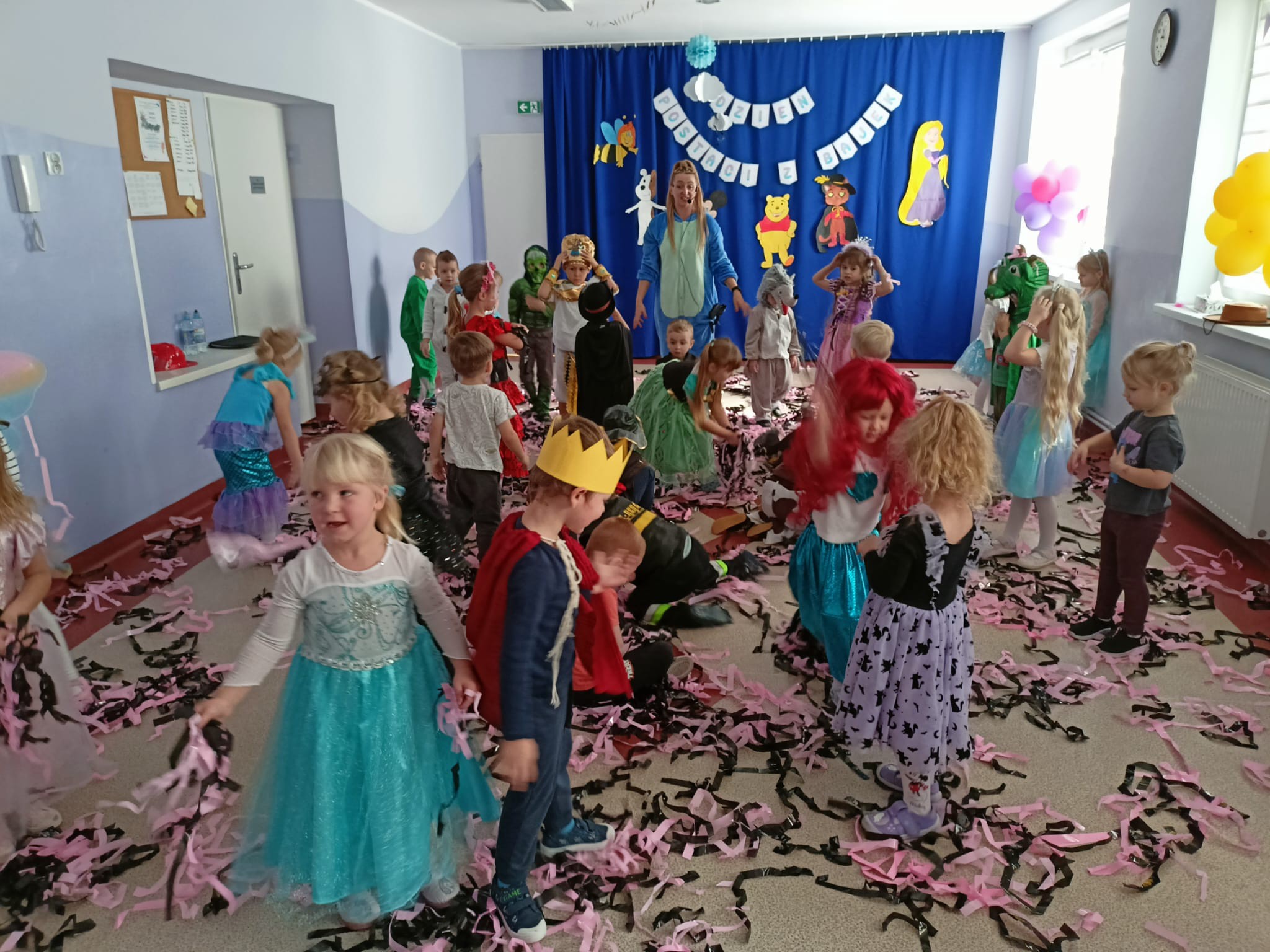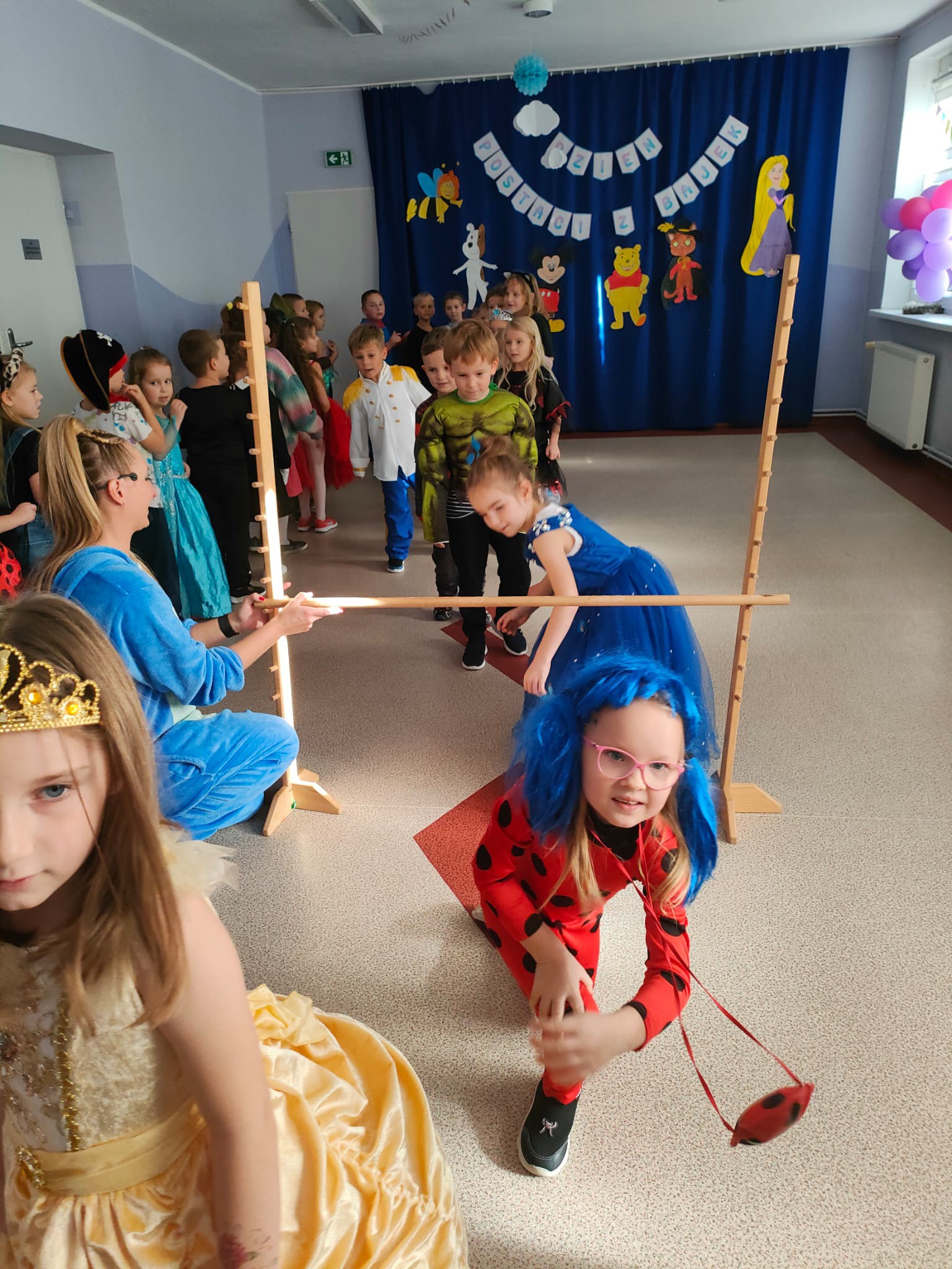 W dniu 5 listopada obchodzimy Międzynarodowy Dzień Postaci z Bajek. Z tej okazji również w naszym przedszkolu zrobiło się niezwykle bajkowo. Urządziliśmy wspaniały bal, w którym wzięły udział wszystkie przedszkolaki. Każdy miał przygotowany wspaniału kostium ukochanego bohatera. Nie zabrakło wróżek, księżniczek, rycerzy, smoków, kotów i oczywiście królów, bo któż inny mógł władać "Tęczową Krainą" w tym dniu?