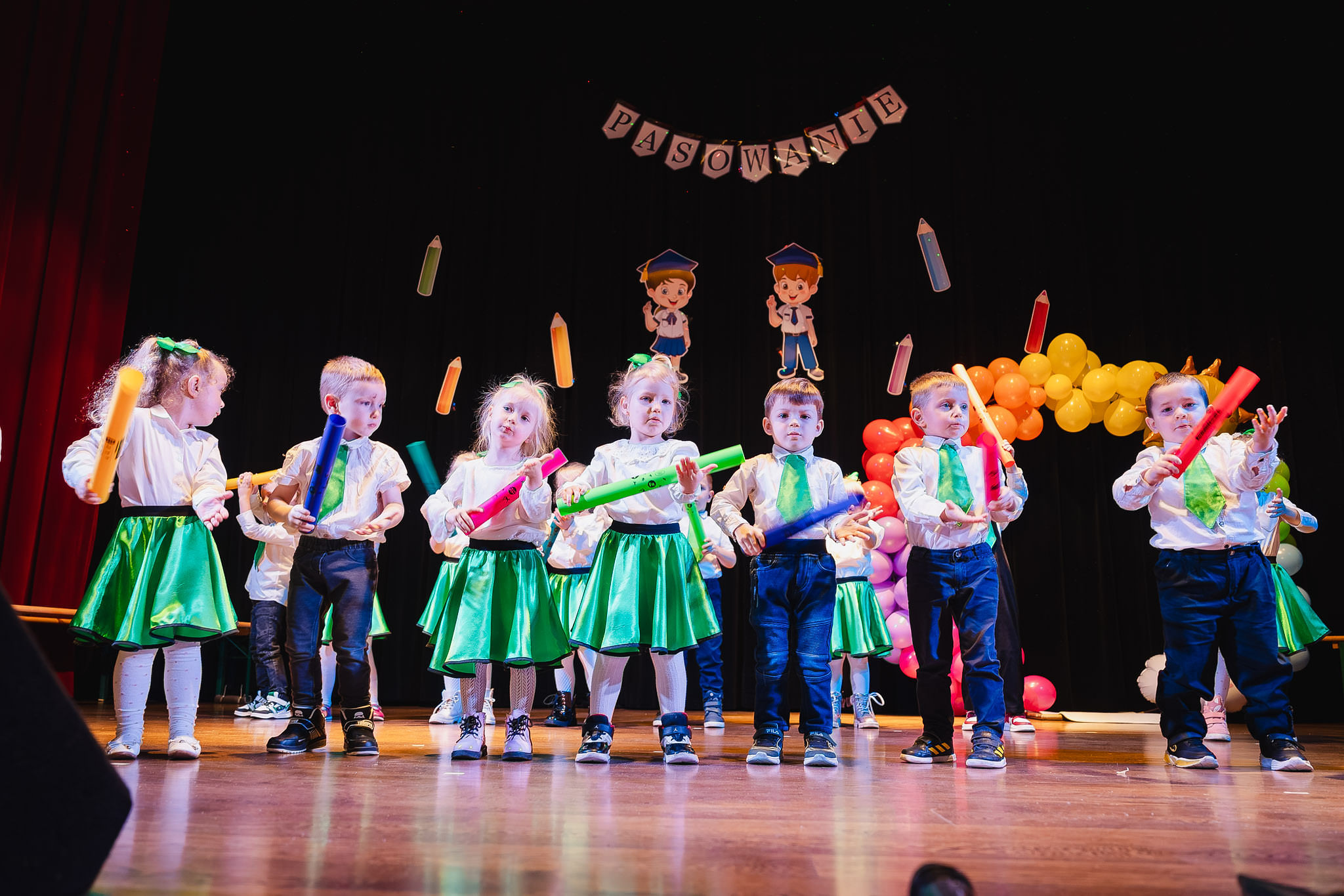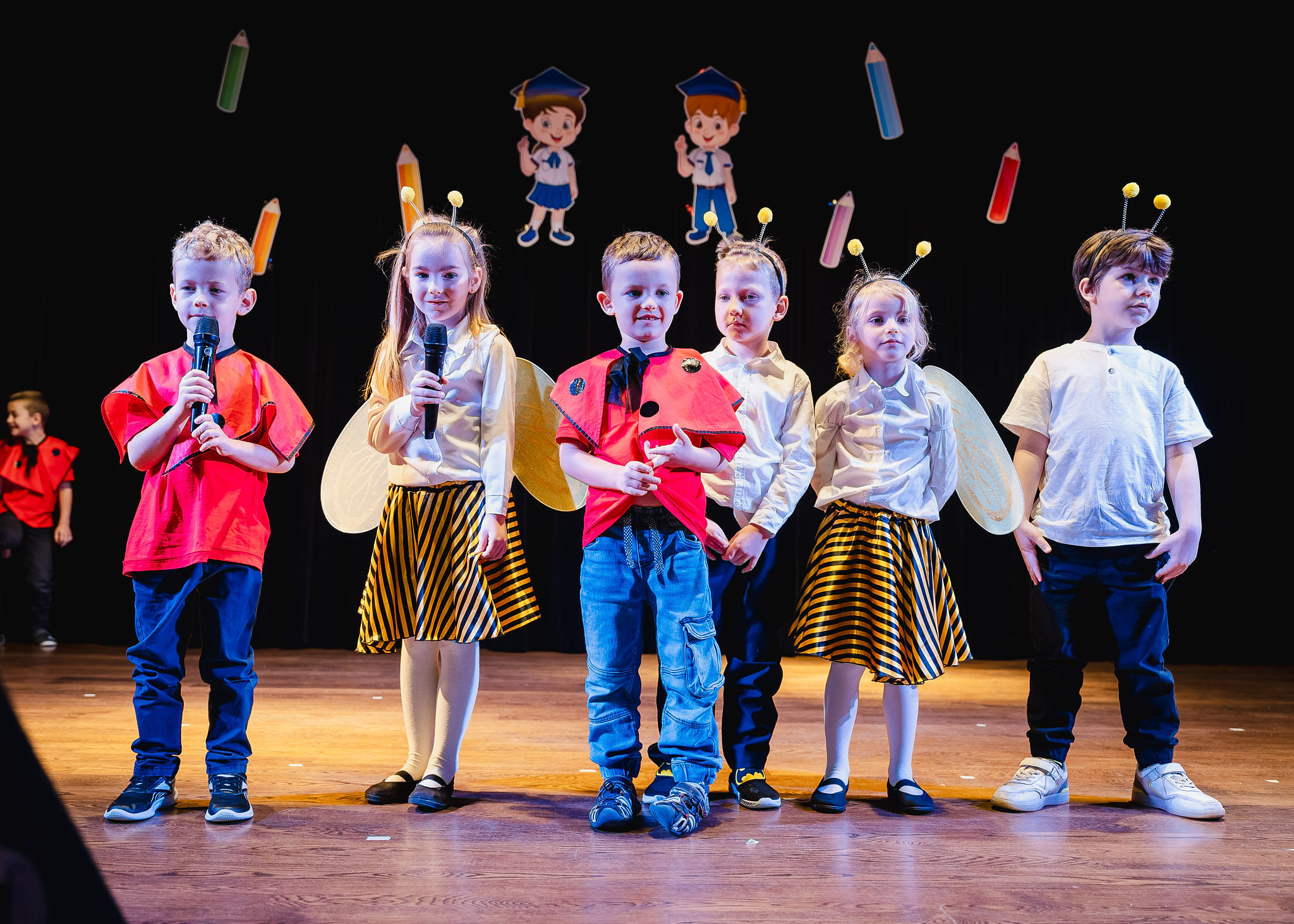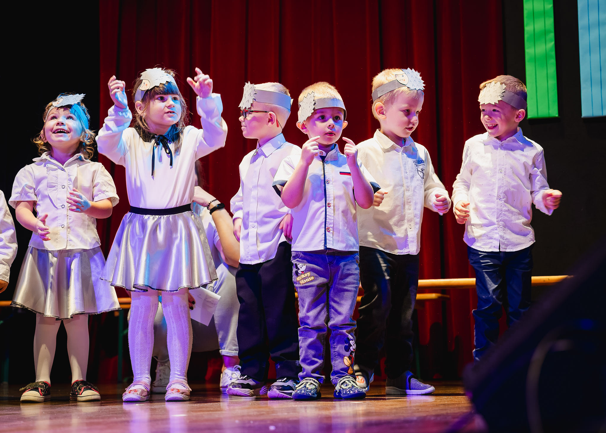 Przedszkolaki z grup młodszych Krasnoludki, Jeżyki, Myszki i Motylki zaprezentowały się w piosenkach i tańcach, które zachwyciły publiczność zgromdzoną na widowni. Dzieci wykazały jednocześnie swoje umiejętności – dając tym samym dowód, jak dużo już potrafią.