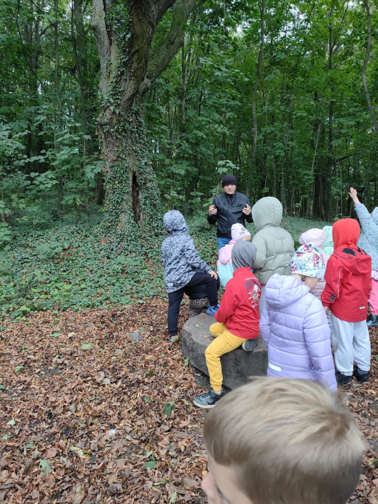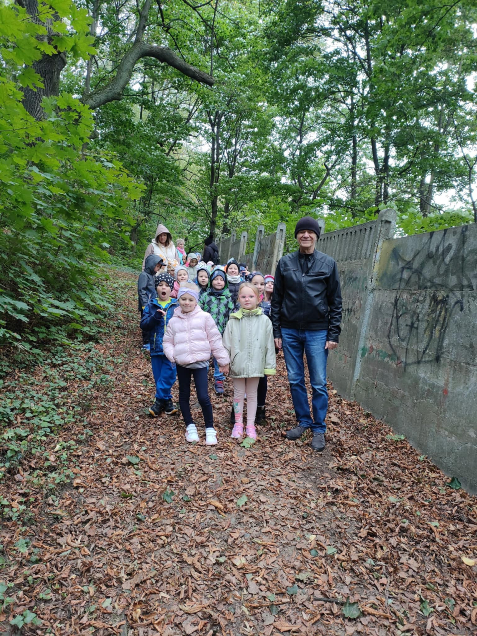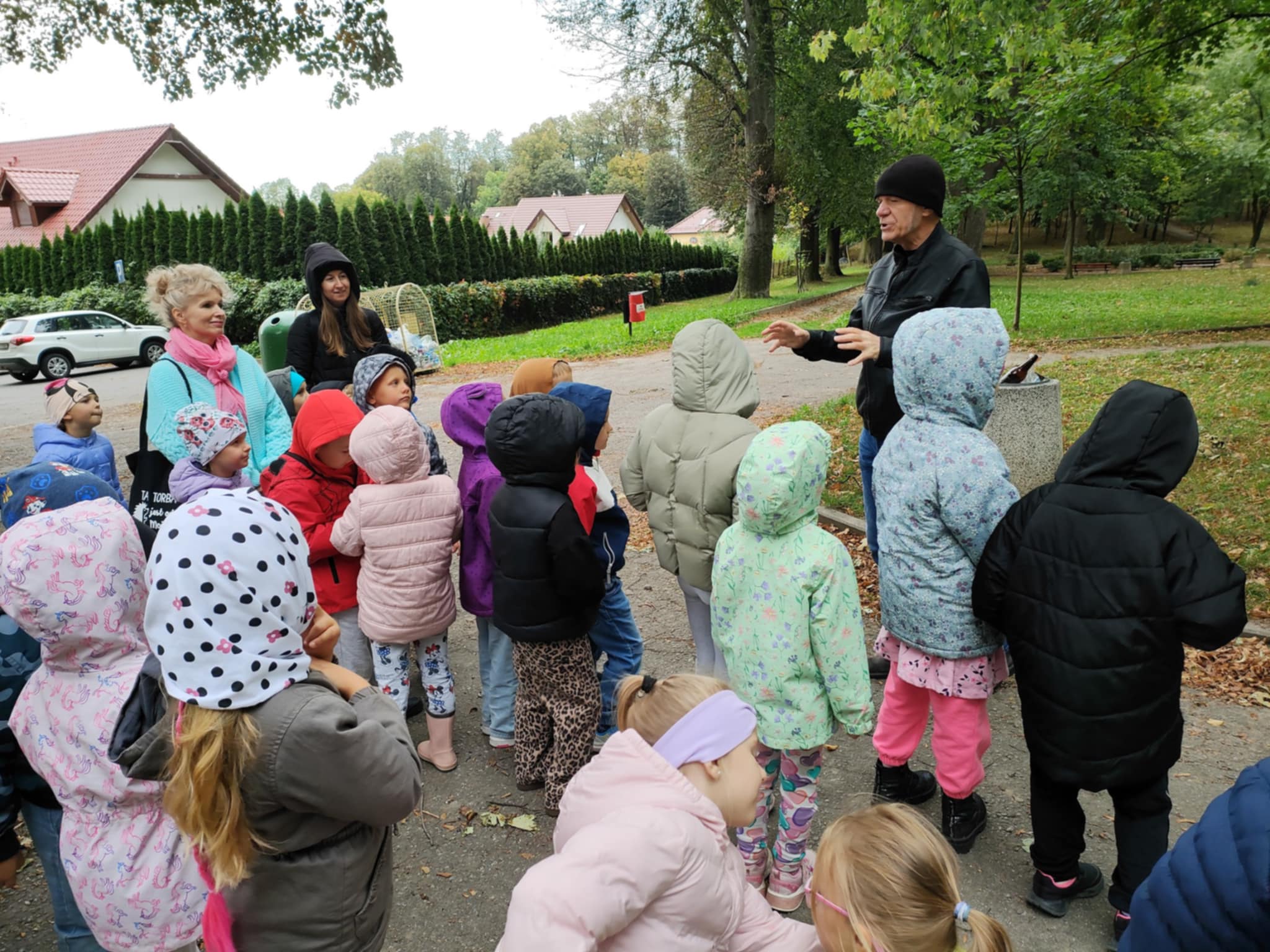 W wyprawie towarzyszył im kustosz Izby Pamięci Braci Morawskich - Pan Arnold Kordasiewicz, który oprowadził przedszkolaki po wzgórzu i opowiedział historię dotyczącą terenów, które wspólnie przemierzaliśmy. Nie zapomniał również wspomnieć licznych legend związanych z Piławą Górną i pobliskimi miejscowościami oraz o skrzatach, które zamieszkują park.