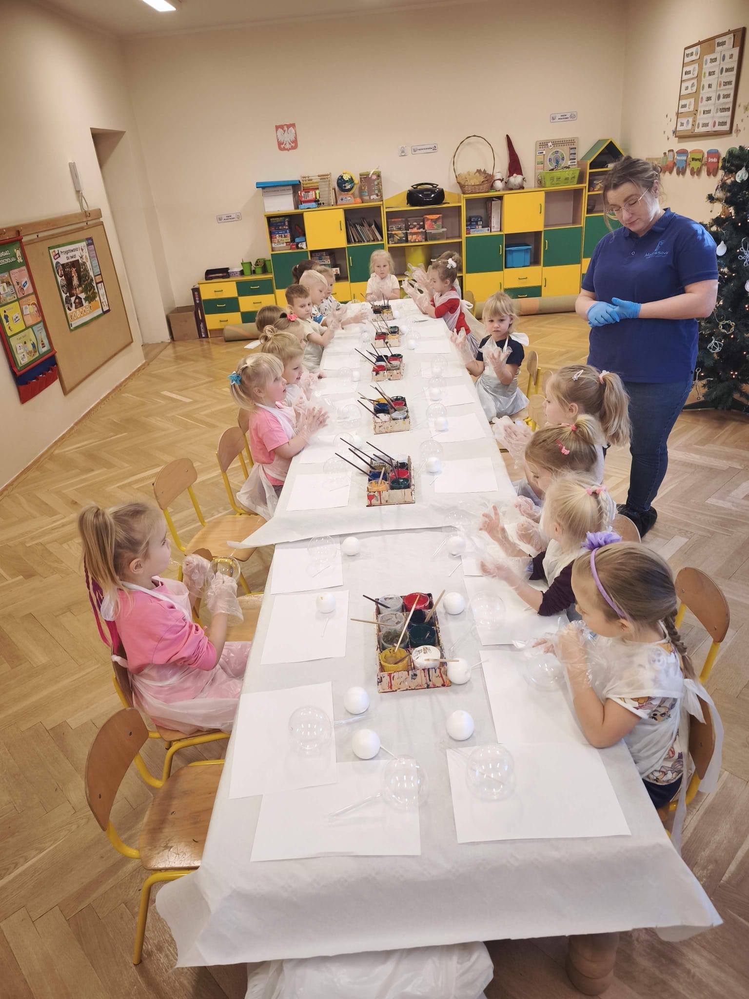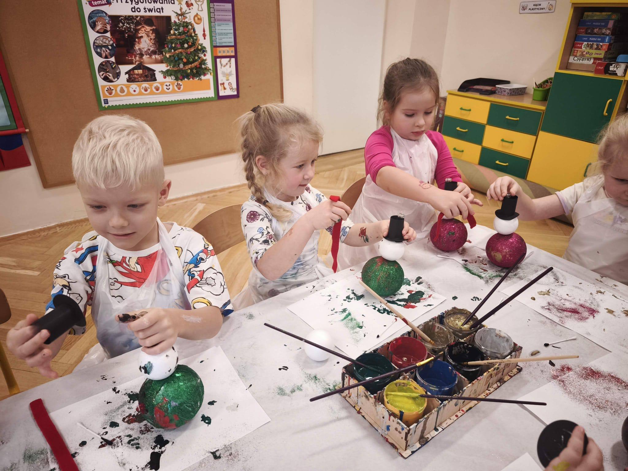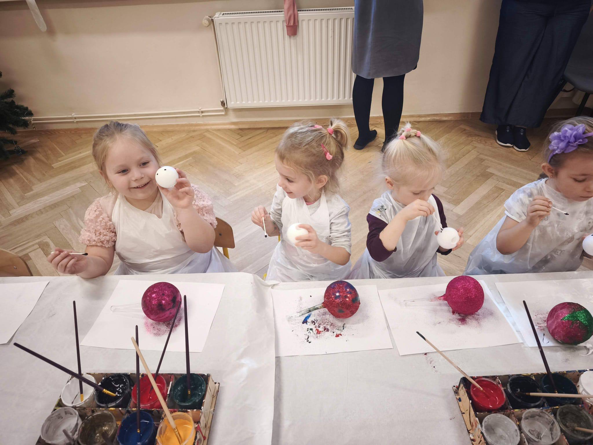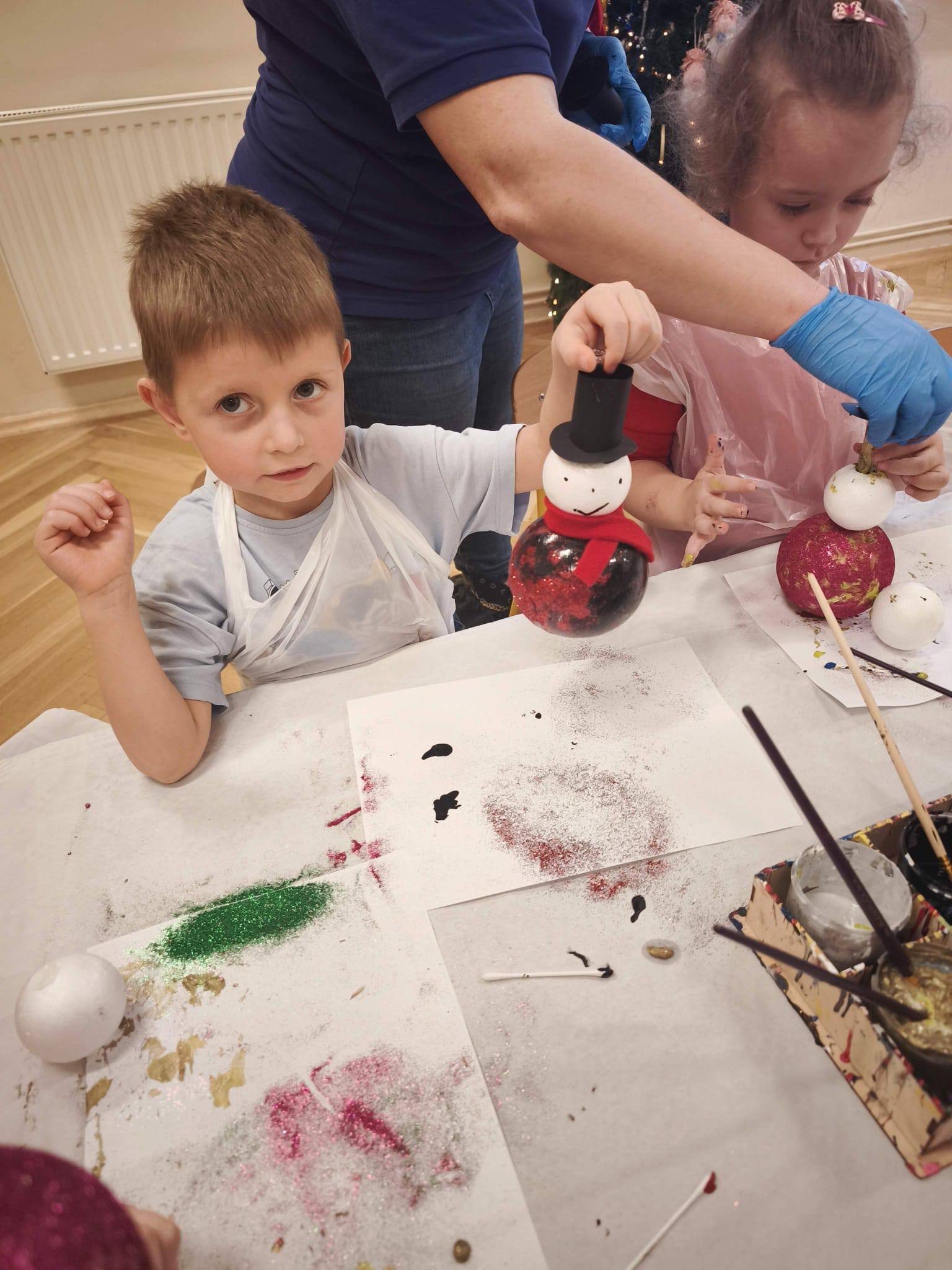 koło plastyczne wzięły udział w warsztatach bombkowych, które odbyły się 10 grudnia. Była to okazja, by poczuć atmosferę zbliżających się świąt Bożego Narodzenia. W trakcie zajęć dzieci własnoręcznie tworzyły kreatywnego bałwana. Samodzielnie malowały bombkę farbami, nadając jej bożonarodzeniowy nastrój, następnie zdobiły ją wybranymi świątecznymi symbolami. Bałwanki zostały ubierane w szaliki i kapelusze, a brokat nadał im świątecznego blasku.